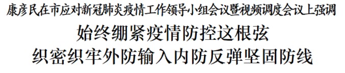9月17日晚,在收聽收看省應(yīng)對疫情工作視頻調(diào)度會議后,我市隨即召開市應(yīng)對新冠肺炎疫情工作領(lǐng)導(dǎo)小組會議暨視頻調(diào)度會議,深入貫徹落實省會議精神,對全市疫情防控工作進(jìn)行再調(diào)度再部署。市委書記、市應(yīng)對新冠肺炎疫情工作領(lǐng)導(dǎo)小組組長康彥民主持會議并講話。市委副書記、市應(yīng)對新冠肺炎疫情工作領(lǐng)導(dǎo)小組常務(wù)副組長張效春出席會議。