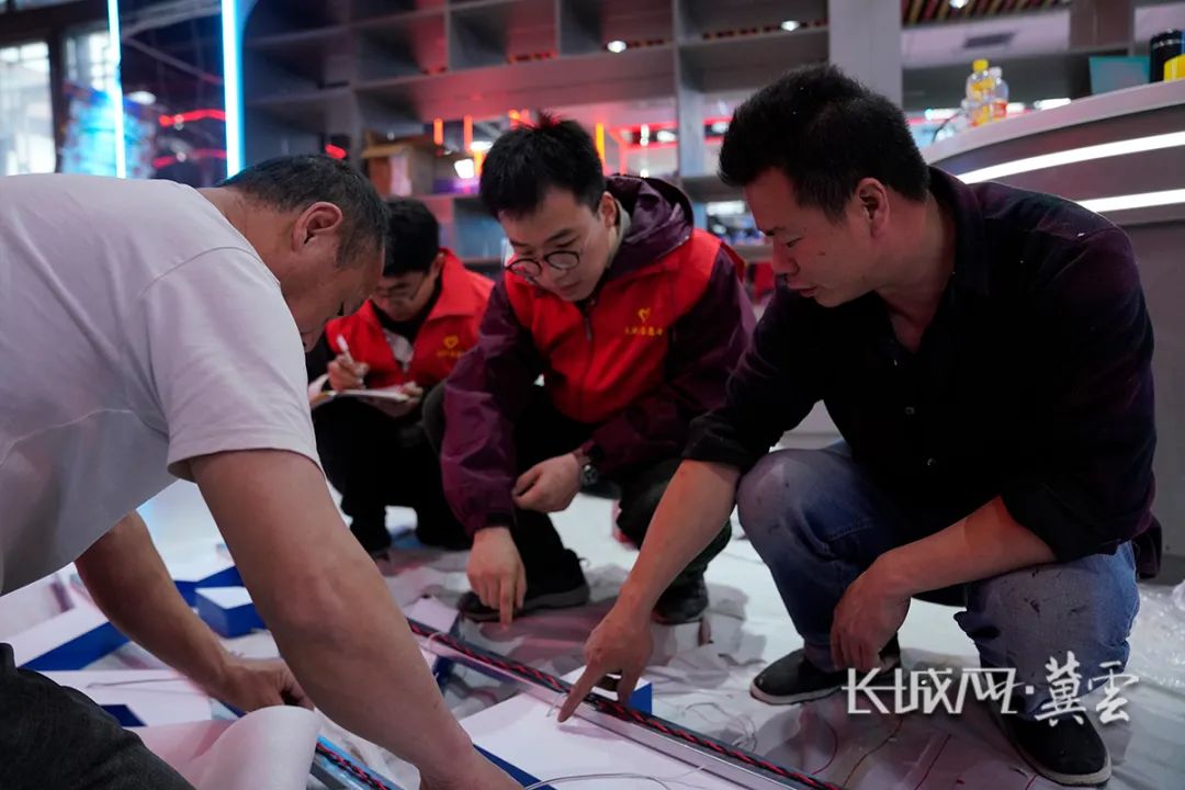 黨員志愿者在幫助協(xié)調(diào)滄州坊店鋪裝修事宜。長城網(wǎng)·冀云客戶端記者 崔上 攝