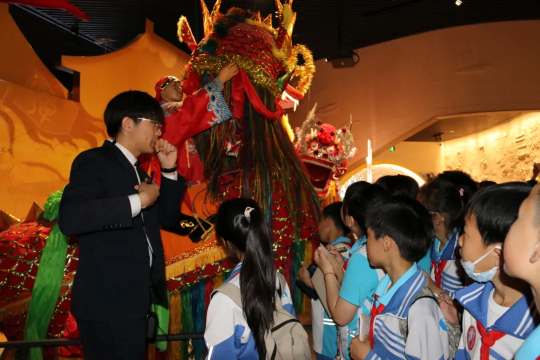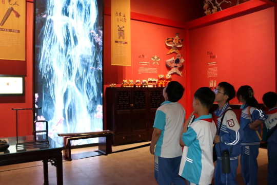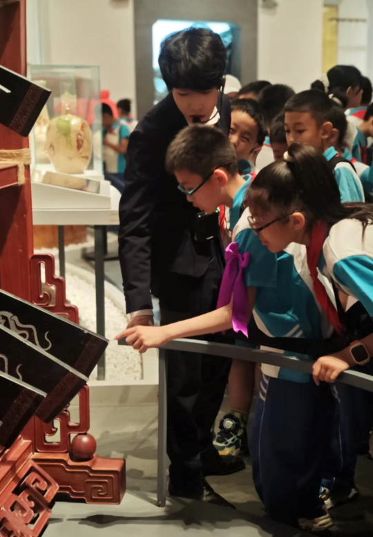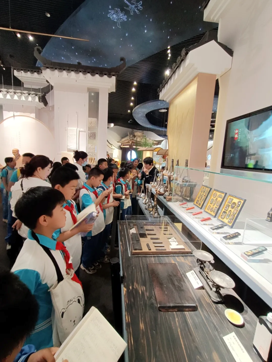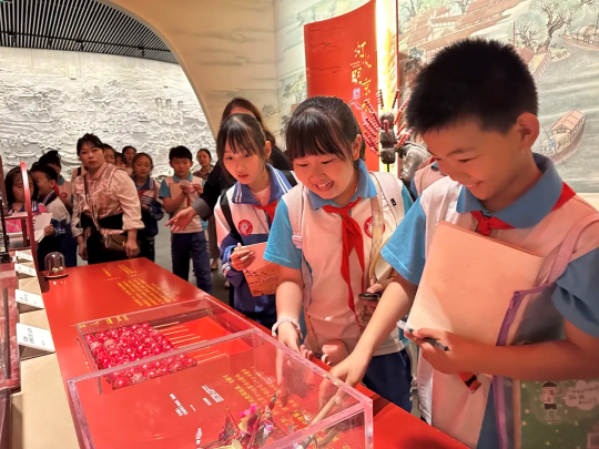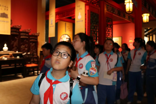 少先隊員們行走于八省展區(qū),震驚于古老建筑、藝術(shù)品和各種古老技藝的精湛。氣節(jié)之美、文房四寶、精品織造、木雕制作、繁榮文化等等,無不展示了非遺精粹,讓少先隊員們陶醉其中。