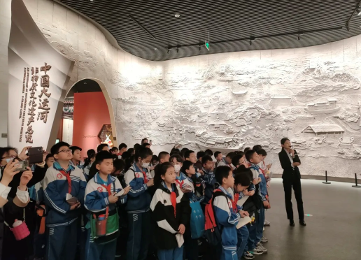 “大運(yùn)河是祖先留給我們的寶貴遺產(chǎn),是流動的文化,要統(tǒng)籌保護(hù)好、傳承好、利用好。”為貫徹落實(shí)總書記對建設(shè)大運(yùn)河文化帶以及宣傳大運(yùn)河文化帶思想的重要指示精神,充分挖掘大運(yùn)河豐富的歷史文化資源,引導(dǎo)少先隊員們更好地了解家鄉(xiāng)滄州,豐富“運(yùn)河娃”的精神文化內(nèi)涵,切身感受大運(yùn)河的璀璨文化和歷史記憶。4月23、24、26日三天,我校四年級全體師生及家長代表600余人,開展以“紅領(lǐng)巾相約大運(yùn)河 非遺書寫'運(yùn)河記憶'”為主題的參觀大運(yùn)河非物質(zhì)文化遺產(chǎn)展示館研學(xué)活動。在講解員的講解下,大家領(lǐng)略大運(yùn)河豐富歷史文化遺產(chǎn),感受運(yùn)河的多彩文化魅力。