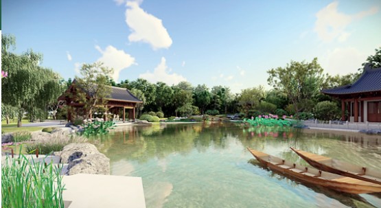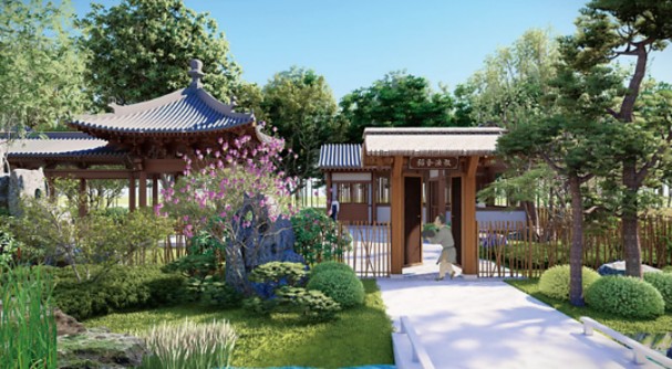 府河人家,以保定母親河——府河沿岸人家為原型,采用合院形式展現(xiàn)居住環(huán)境。一畝泉河是保定府河的源頭,這里將呈現(xiàn)泉水噴涌、溪流潺潺的優(yōu)美景色,體現(xiàn)府河邊的園林生態(tài)特色。