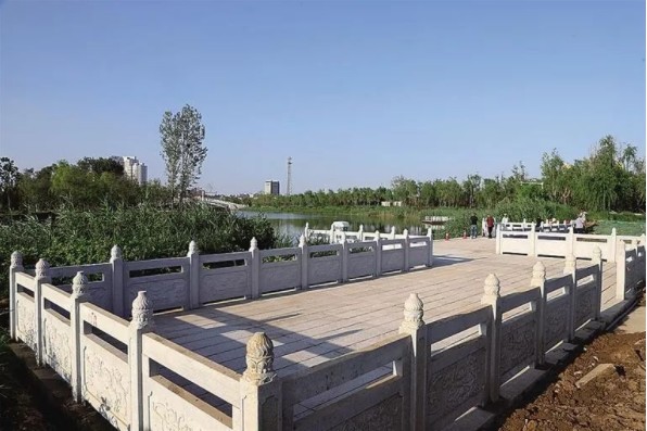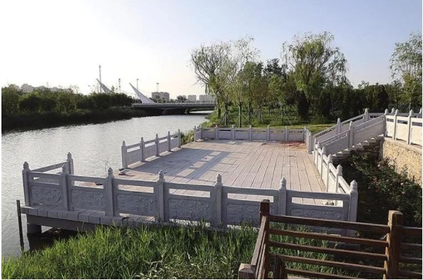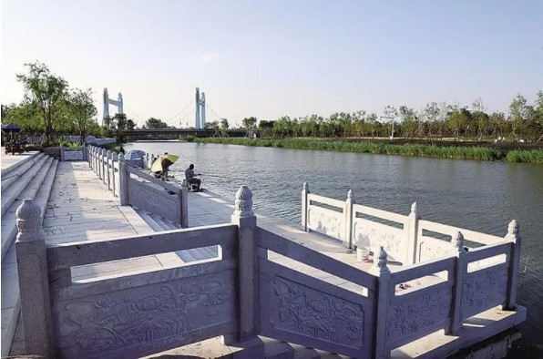 建設(shè)者將新建碼頭與大運河文化帶相融合,重現(xiàn)古代大運河滄州段的繁榮景象。大部分碼頭在原碼頭附近修建,碼頭名稱已沿用千年,保留了大運河的厚重歷史感。在建設(shè)中,他們還選用青白相間的大理石材地板磚鋪裝碼頭,在圍欄中間采用石雕的荷花,彰顯滄州這座城市的歷史韻味。