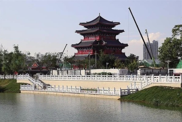 繼續(xù)向北,則是百獅園對岸的南川古渡碼頭。這個碼頭位于南川樓南側(cè)東岸,長48米、寬8米。這里清風拂面、水流潺潺,對岸是百獅園內(nèi)的仿古建筑和牌坊。通過正在建設(shè)的步行橋,游人可穿梭往來。游人在此既可觀賞兩岸的仿古建筑,又可在百獅園內(nèi)游玩。