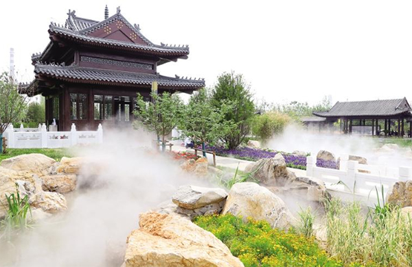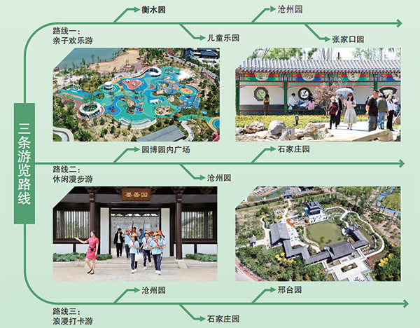 沿著園區(qū)小路蜿蜒前行,13個城市展園的園林盛景依次呈現(xiàn):“雄風(fēng)秀雅·文武滄州”的滄趣園、“冬奧交響,盛世張垣”的張家口園、“窗前影、萬象新”的唐山園、“一代名相、清風(fēng)梅苑”的邢臺園……13個城市展園用各自特有的元素,向世人演繹美麗河北,述說燕趙風(fēng)韻。