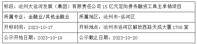 項(xiàng)目名稱:滄州大運(yùn)河發(fā)展(集團(tuán))有限責(zé)任公司15億元定向債務(wù)融資工具主承銷項(xiàng)目
