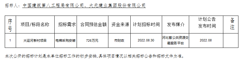 滄州大運(yùn)河集團(tuán)2022年下半年公開招標(biāo)計(jì)劃公告